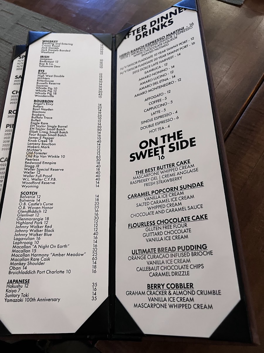 The drink menu complements the food beautifully, featuring artisanal offerings like the Hero Ranch Espresso Martini, destined to be a hit for coffee lovers, or the Barrel Aged Negroni, which adds a compelling twist with its nuanced flavors, expertly crafted for those seeking something extraordinary.