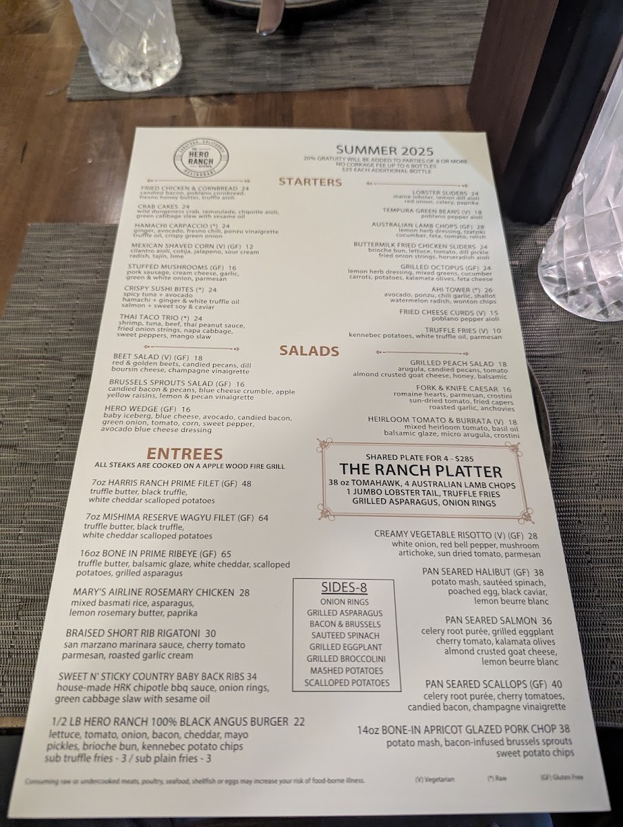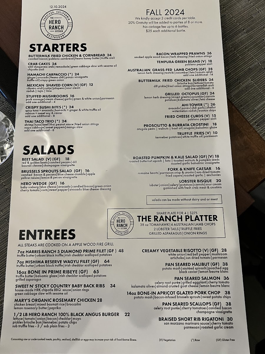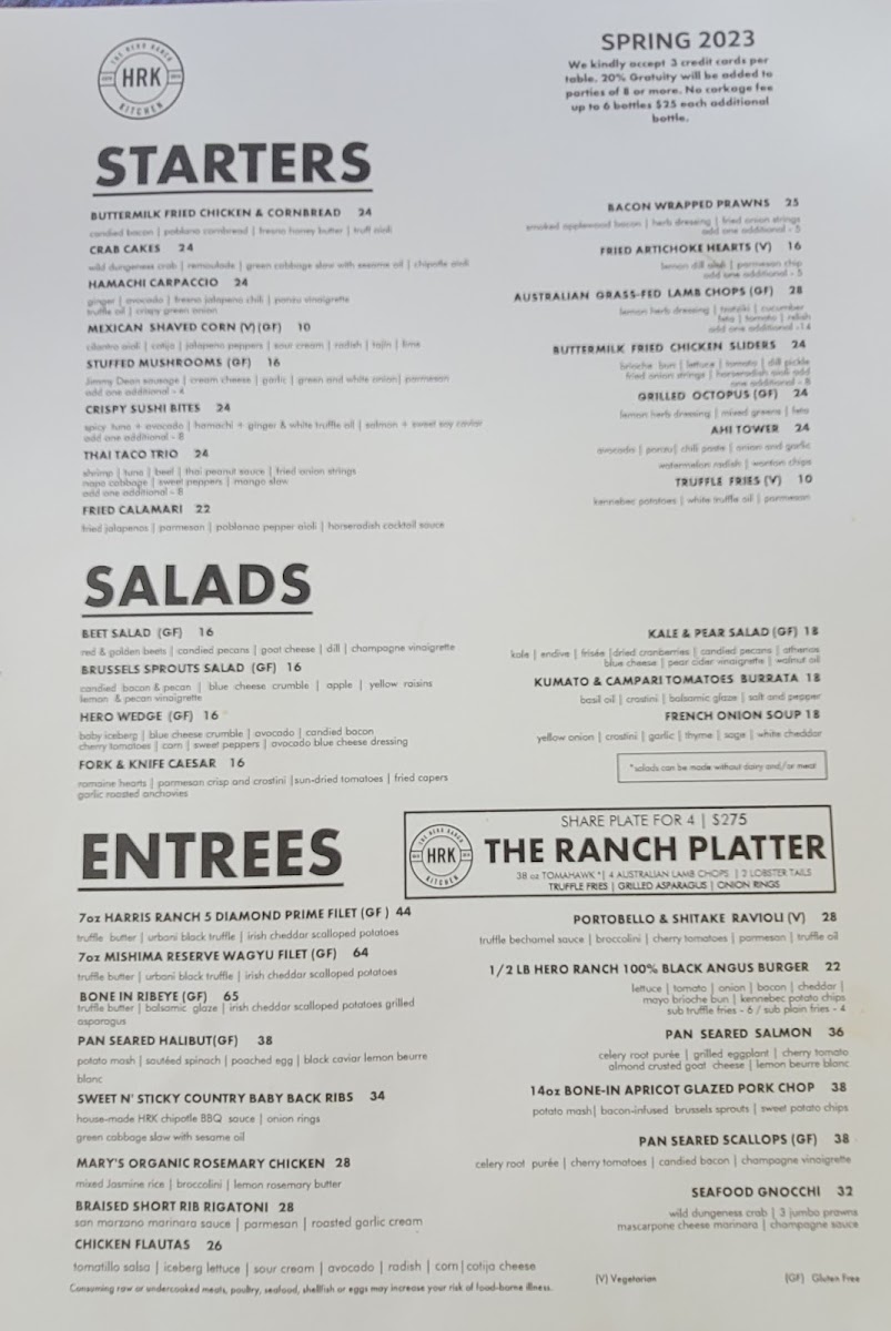 Hero Ranch Kitchen specializes in a vibrant array of dishes that marry comfort and gourmet flair, capturing the essence of modern American cuisine. Imagine starting your meal with their Grilled Octopus, impressively tender and seasoned to perfection, or perhaps the Beet Salad, which provides a refreshing contrast with its bright, earthy flavors. For those seeking something hearty, the legendary Ranch Platter is a showstopper—featuring a breathtaking 38 oz. Tomahawk steak accompanied by Australian lamb chops and lavish lobster tails, it's designed to satisfy even the hungriest of guests.